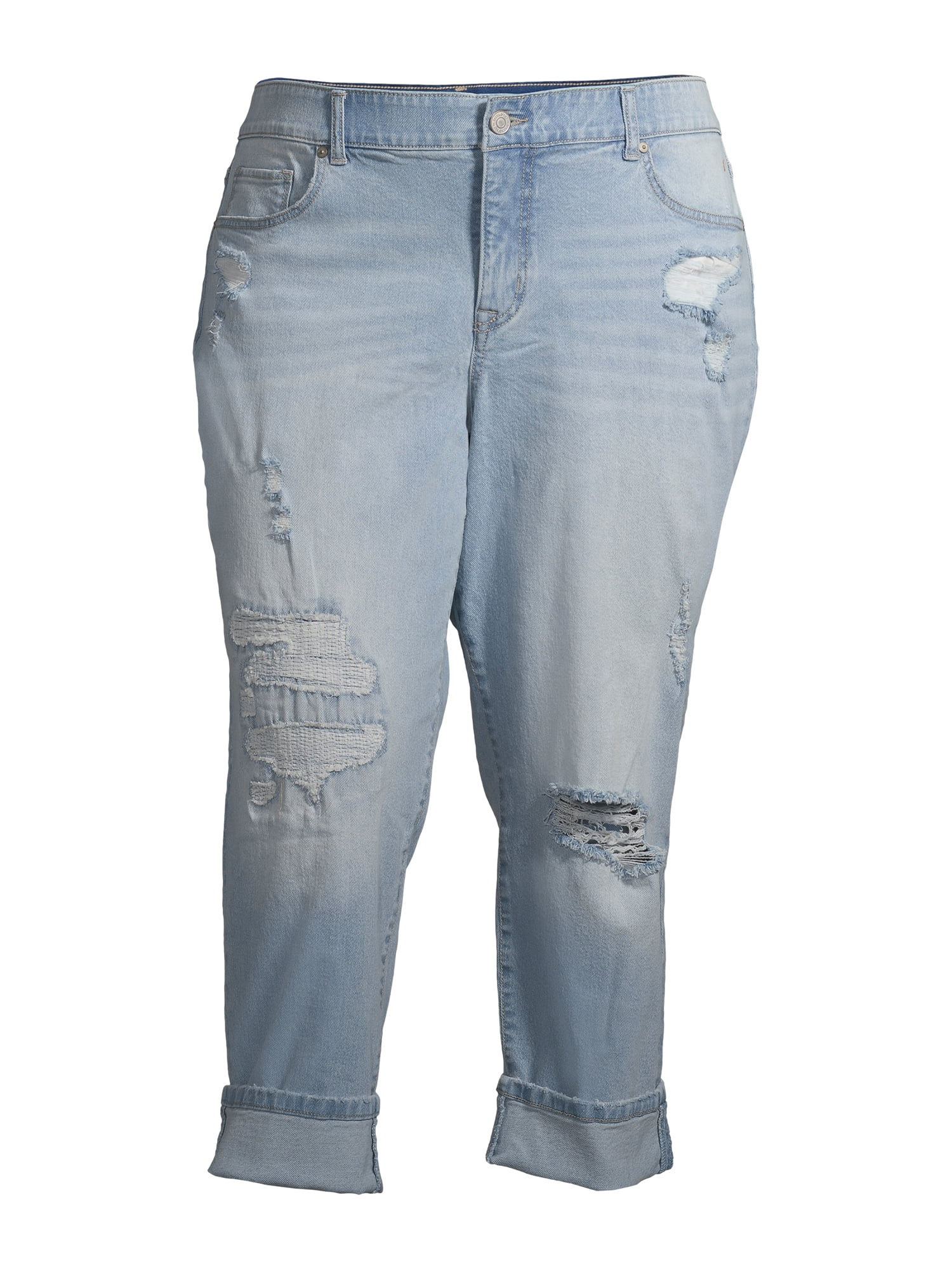 Terra Sky Women S Plus Size Slim Boyfriend Jeans With Comfort Waist Walmart Com